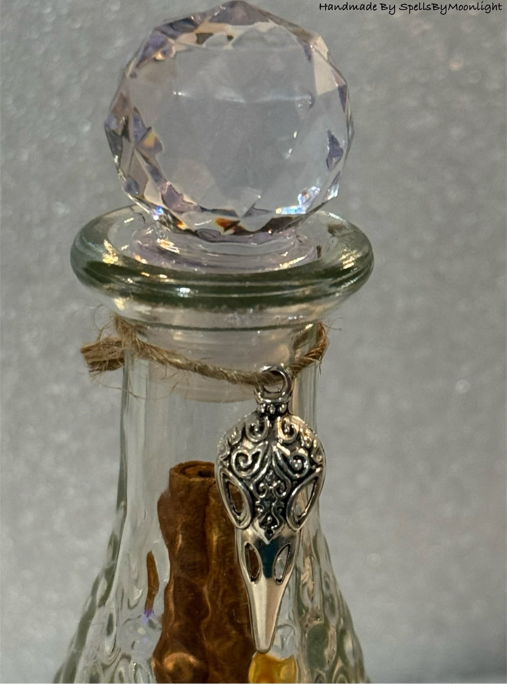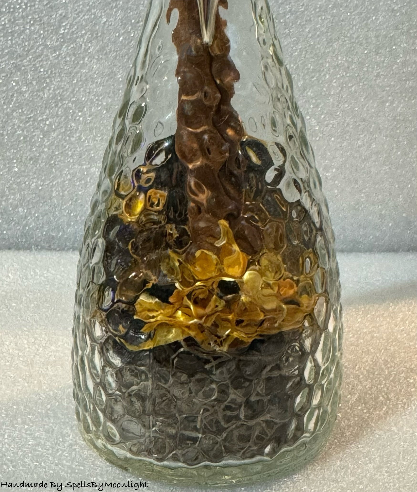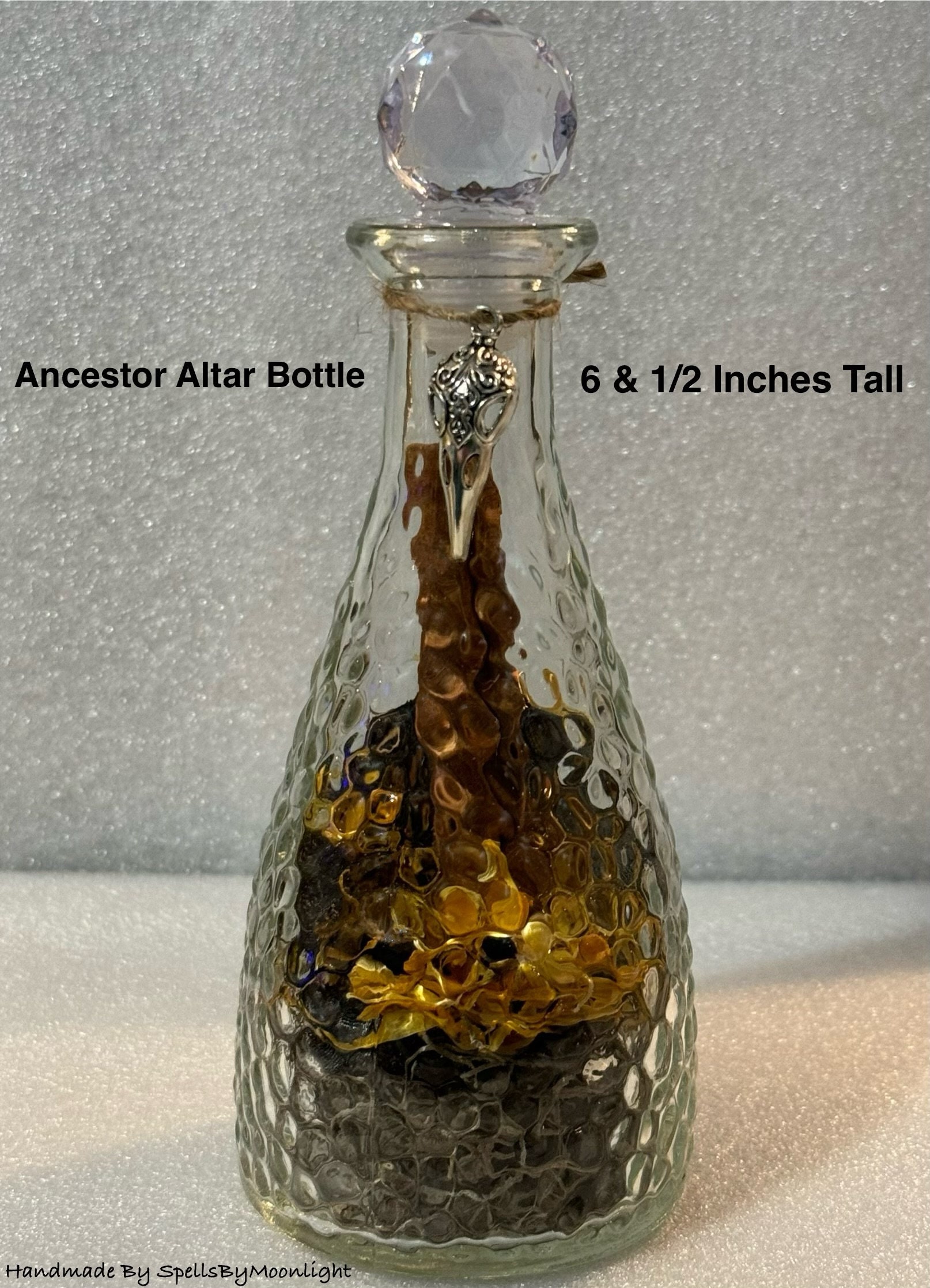I created this Ancestor Bottle to sit on your Ancestor Altar or on your Altar in Remembrance of your Ancestors. It can also be used as an offering to your Ancestors or to help invoke them for their help. I did not seal the bottle so you are able to add small things to it over time, such as Crystals, Charms, Small Notes, Small Photos, Herbs/Flower Petals. The Bottle is Clear Glass with a Clear Glass Cork and is 6 & 1/2 inches tall. The Contents of the bottle include: -Cinnamon Stick for Protection when connecting with your Ancestors -Dried Spanish Moss For its association with ceremonial clothing worn by mourners and for its ability to draw in Love -Calendula Petals for its connection with Divination and connecting with Ancestors and other Spirits, and its close associations with remembering and Honoring passed Loved Ones -Black Rose Petals (I chose silk petals so they can last forever) for their connection with passed Loved ones, mourners and their connection with New Beginnings and Love. Listing is for 1 Bottle only. Once your order is placed I do not accept cancelations or returns. If you have an issue with your order, contact me so I can resolve it ASAP. I am required to tell you this listing is sold as a curiosity and I am not able to make any claims regarding effectiveness or outcome of products.
