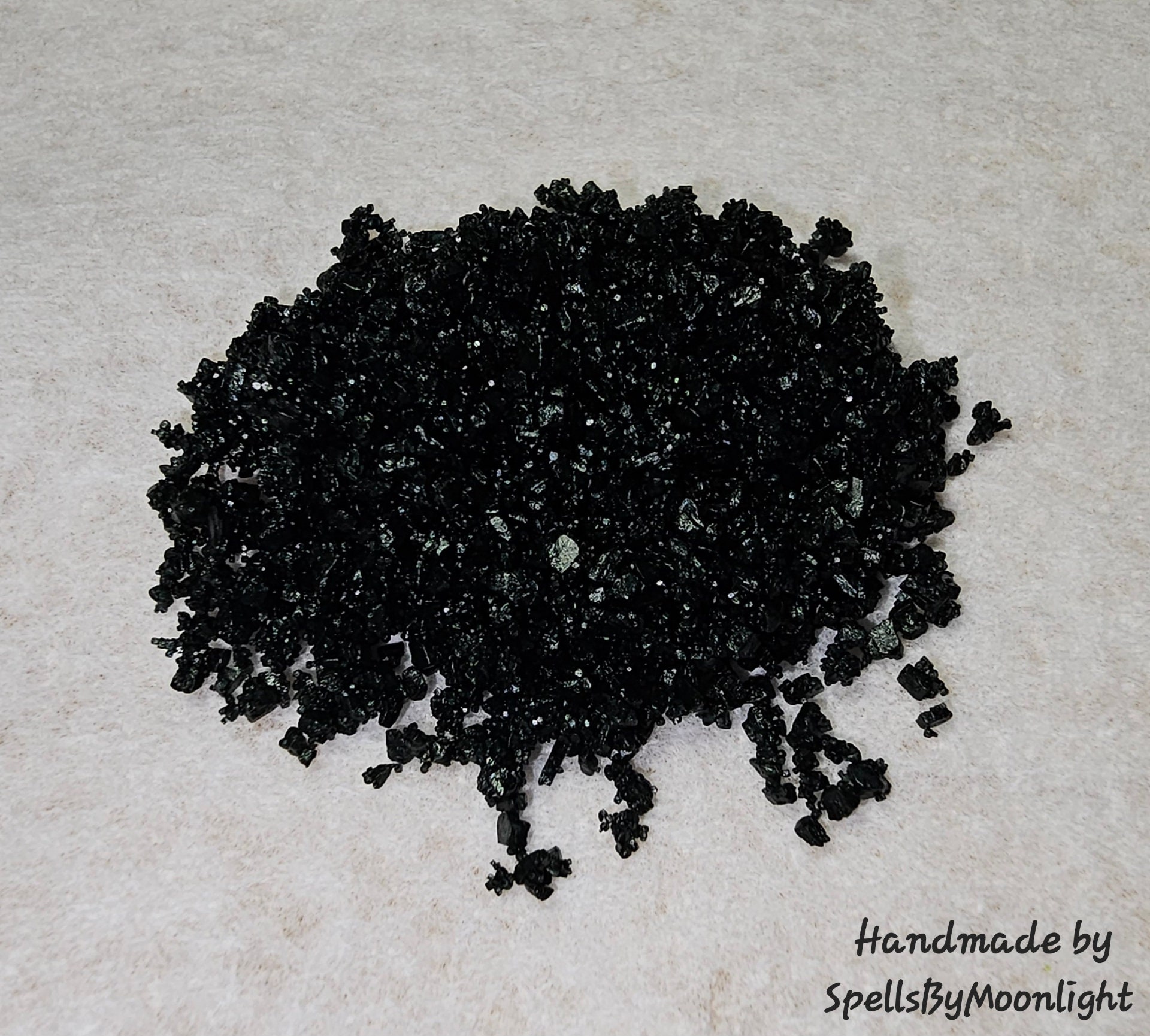 I make my witch salts in small batches. This Black Salt is to help you in warding off evil and negative energies. Used for banashing, breaking hexs and curses.Anything protection related. Use in spells, rituals, spell jars & to dress candles. You can put some in front of your doors & on windowsills for protection ✨Listing is for one 15ml bottle of Black Witch Salt only. All other items were used for product photography