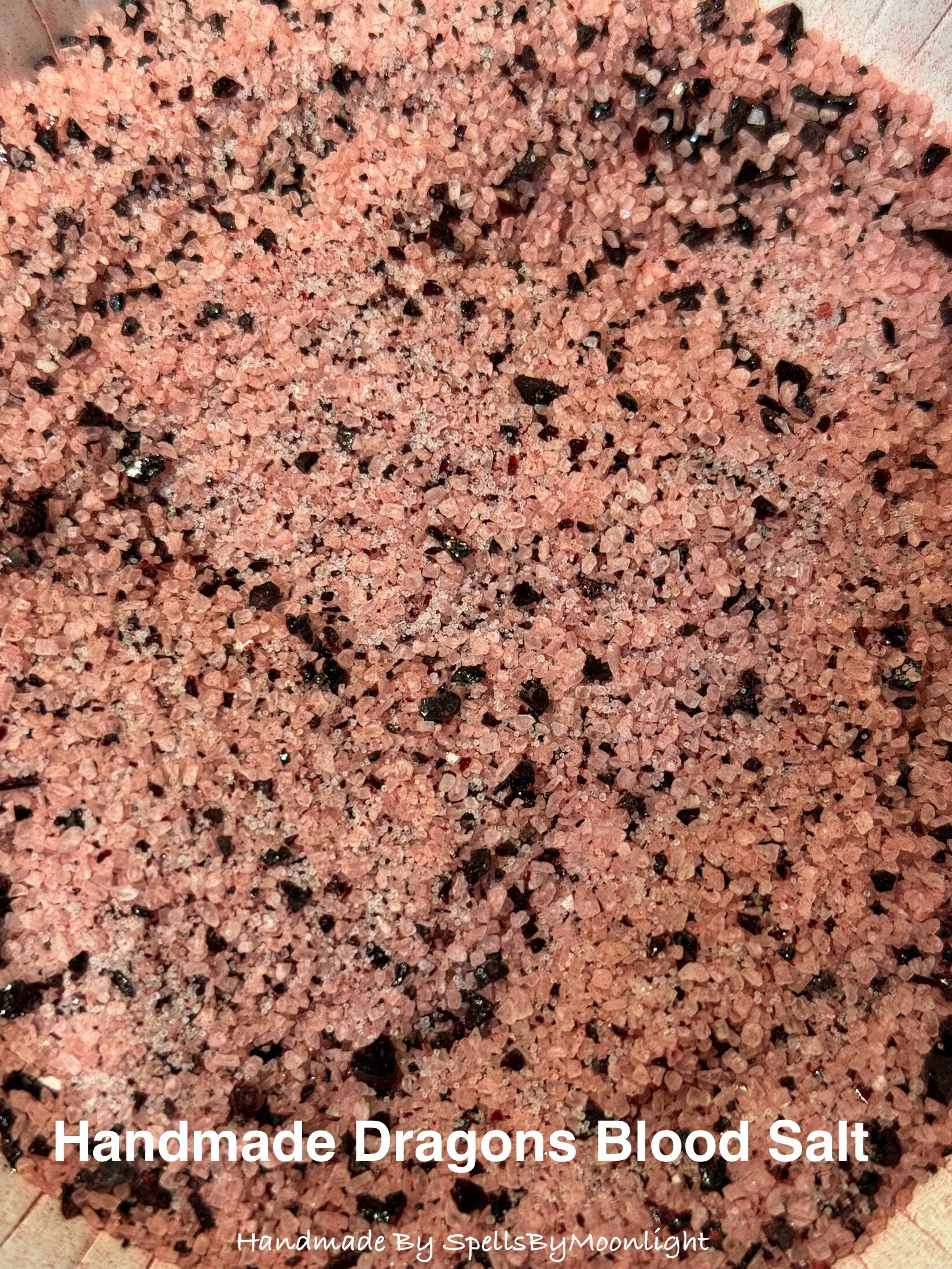 My Dragons Blood Salt is created with Sea Salt, Iodized Salt and Pure Dragons Blood Resin that I hand Crush. There are no Essential Oils or Fragrances added, it is Pure Dragons Blood Salt! It can be used in spells and Rituals for Cleansing, Protection, Love, Banishing and Money Drawing! It can also be used in Self Care Rituals and for Dressing Candles!