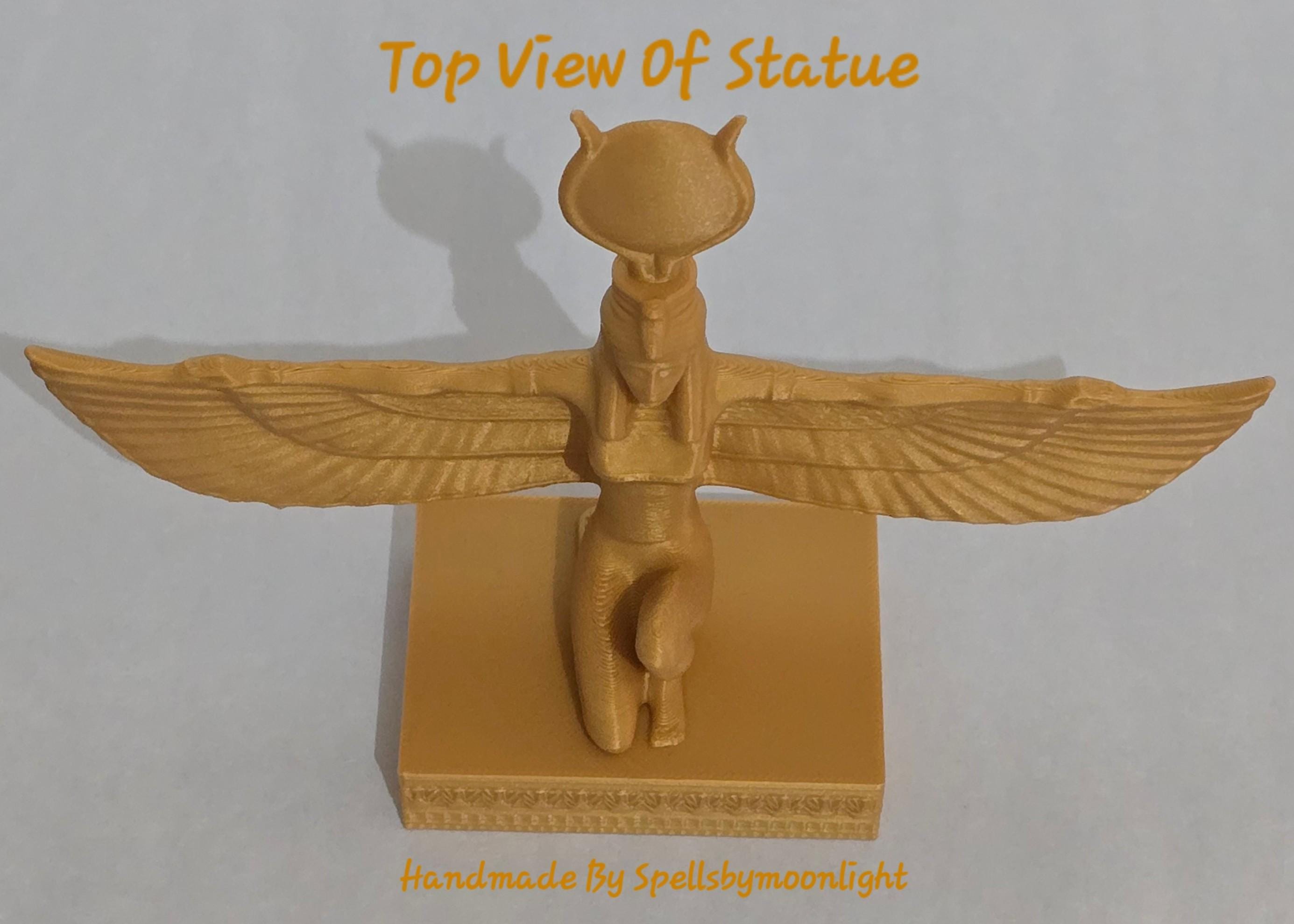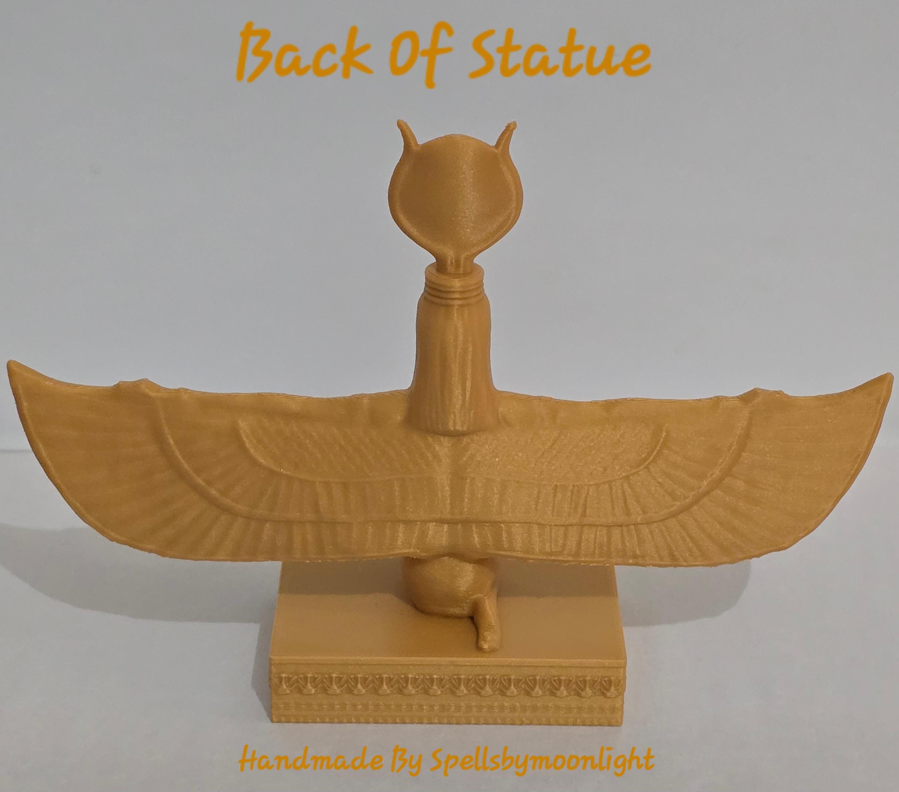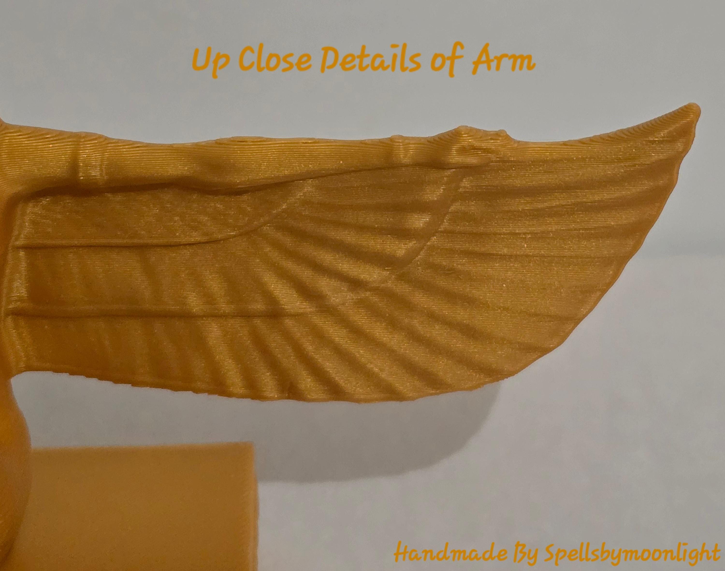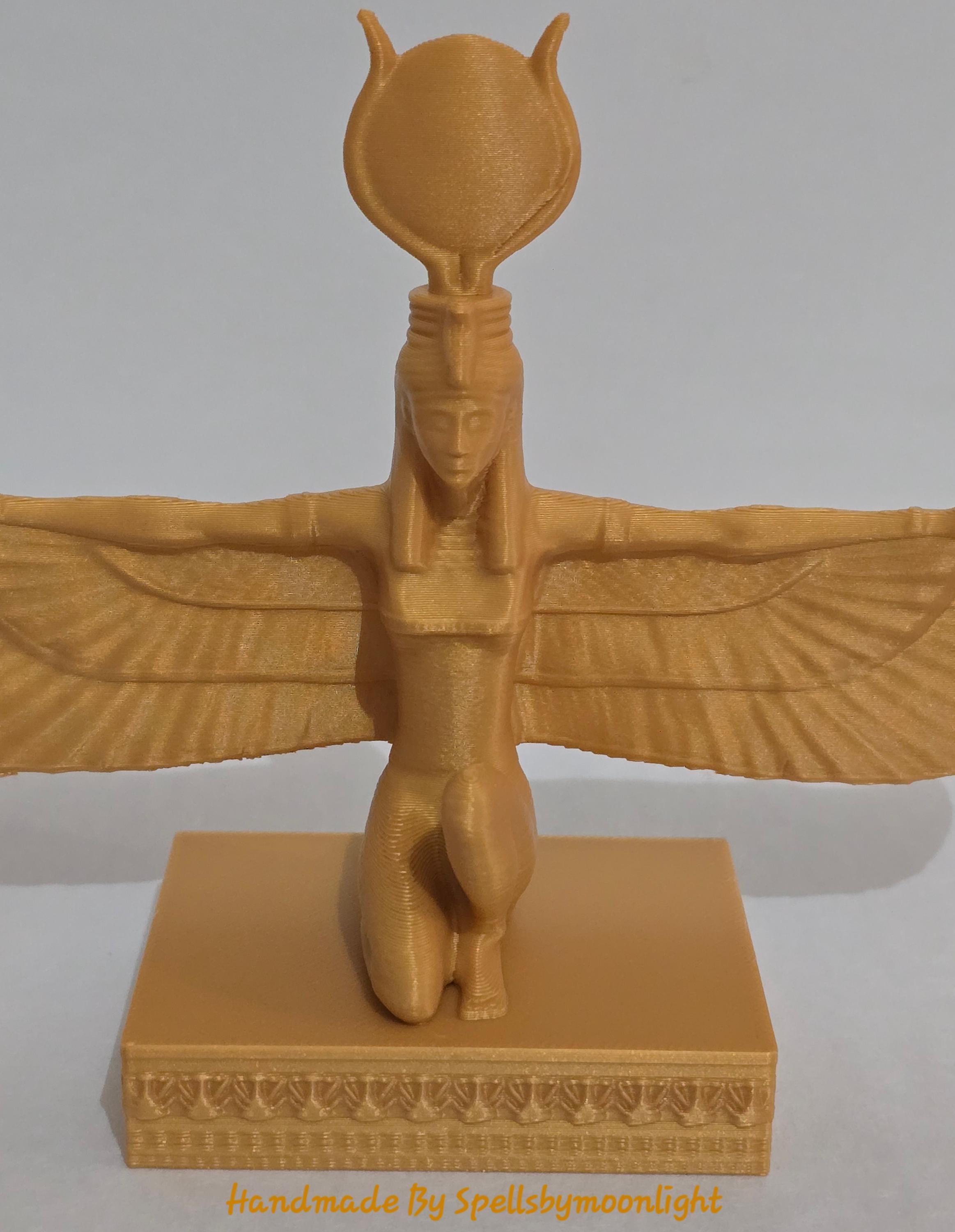 This listing is for One 3D Printed Egyptian Goddess Isis Statue in the color Gold. The Statues are not painted, they are Printed in High Quality PLA so you don't have to worry about paint chipping, peeling, or rubbing off! Please note that colors may differ slightly from how it appears on your screen due to varying monitor/Phone settings. The Statue is Approximately 4 & I/2 Inches Tall by 6 Inches wide.. Base is Approximately 2 & 1/2 Inches Wide by 1 /2 Inch Tall. If you hold the Statue close to your face you can see very minimal lines produced by the 3D Printer. At a normal distance they aren't very noticeable! The lines are minimal in appearance because I have a high end 3D Printer! These Statues are perfect for Your Alter, as an offering to Goddess Isis, and also make great gifts!