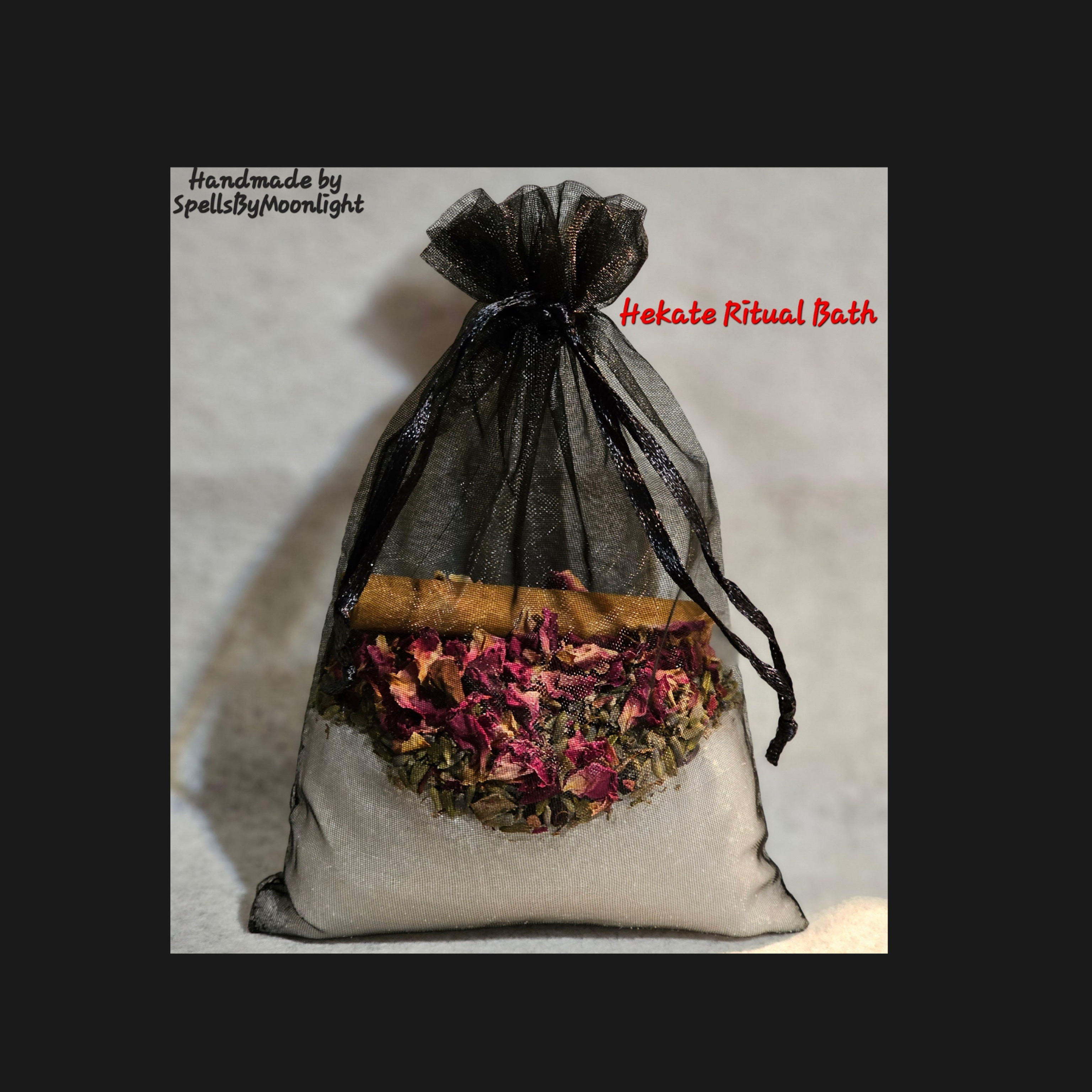I created this Hekate/Hecate Ritual Bath Sachet to help you connect with The Goddess while doing your Bath Ritual to Honor her! The Sachet includes: Epsom Salt, Lavender, Rose Petals, Elderberries, a Cinnamon Stick, Ylang Ylang Essential Oil and Sandalwood Essential Oil