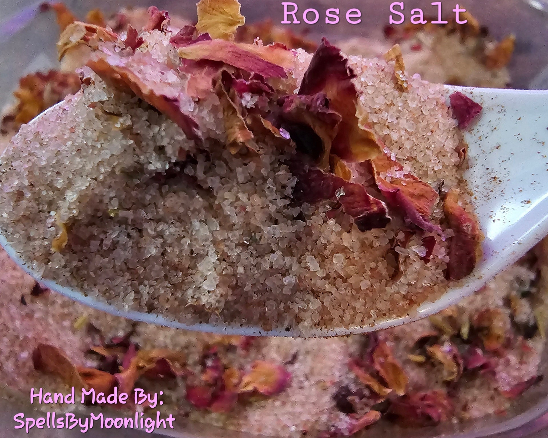 I created this Rose Salt to be used in multiple ways. You can use itas a love or self love spell jar & leave it unopened, place it in your bedroom or on your altar. You can carry it with you in a purse, backpack or car. You can use it as part of a spell jar you create for yourself, It can be used in rituals & spells, to dress candles, use it on your altar tools to get ready for love or self love spells, use it to wash doorways to bring love into your home. This salt can also be used in baths. Each batch is made with intentions set for love & self love. When you receive your jar you should hold it & set your specific intention. For example: "Help me find someone who is worthy of my love" ✨Listing is for 1 bottle only, all other items were used for product photography