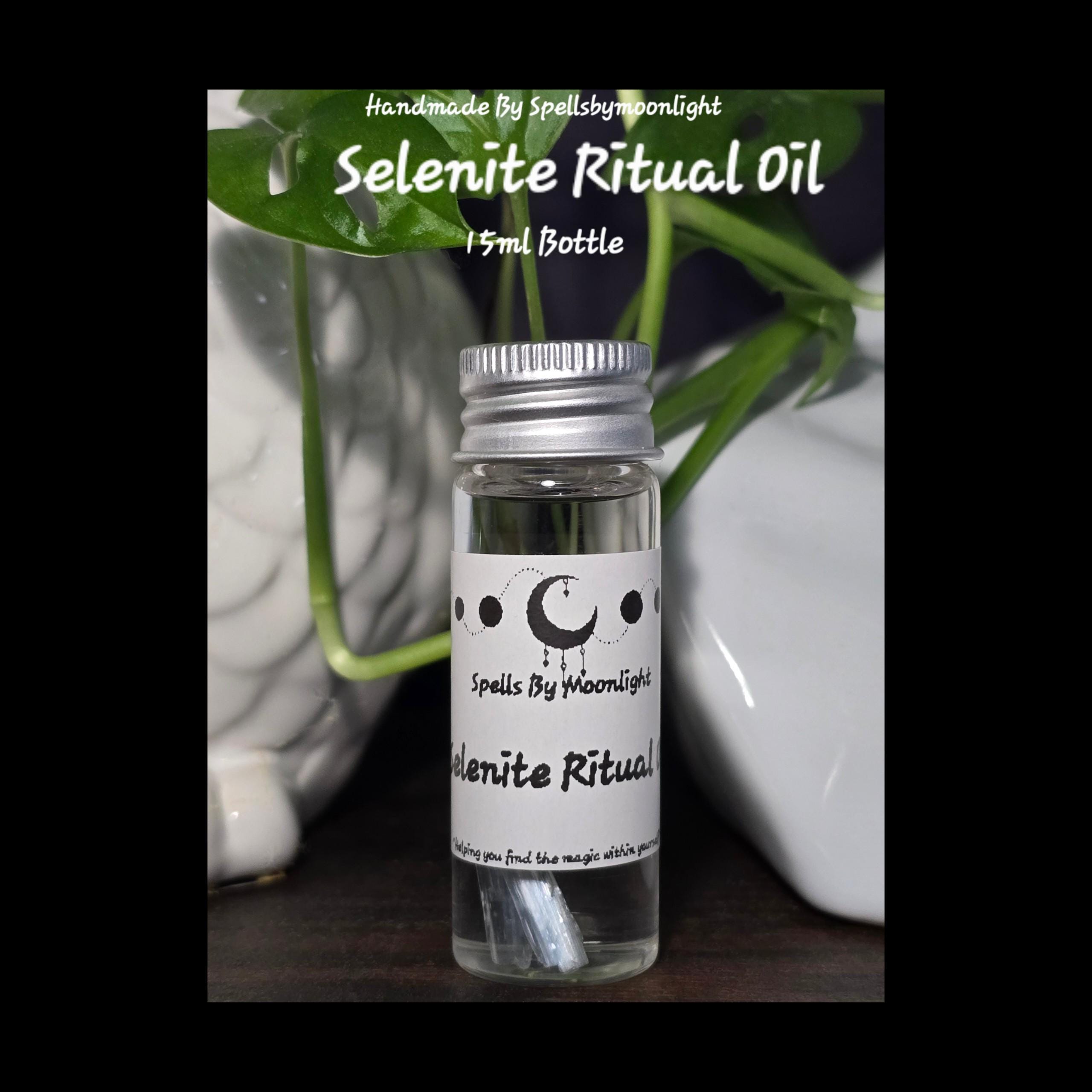 This listing is for one 15ml Bottle of Selenite Ritual Oil. It is made with Selenite, Palo Santo Essential Oil, Sage Essential Oil, Rosemary Essential oil, St Johns WortEssential Oil, Plus 4 other Essential Oils associated with Protection and Cleansing . It is charged By The Moon and can be recharged by the Moon during each Full Moon! You can use this oil for Protection and Cleansing. It can be used on your Altar Tools, Doorways, Windowsills, On Candles, On Poppets, Talisman, Mojo Bags, yourself, Sprinkled in the 4 corners of your home, and in Ritual Baths.
